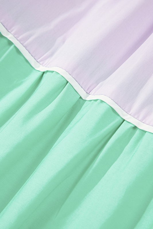 Green Floral Ruffle Puff Sleeve Neckline Dress