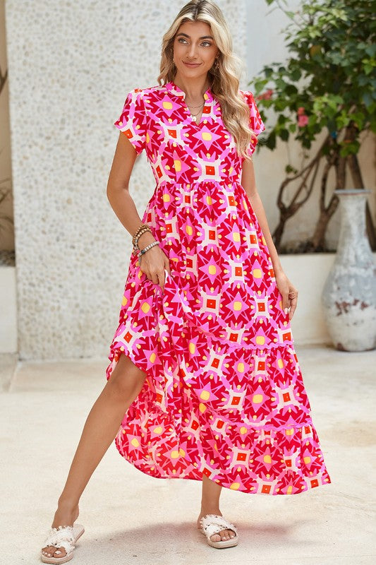 Strawberry Pink Flounce Sleeve Tiered Ruffled Velvet Mini Dress