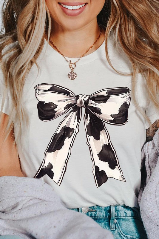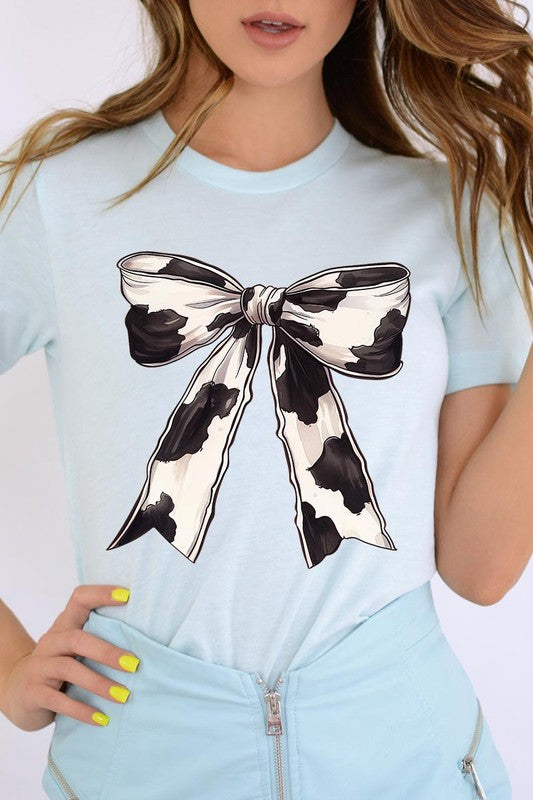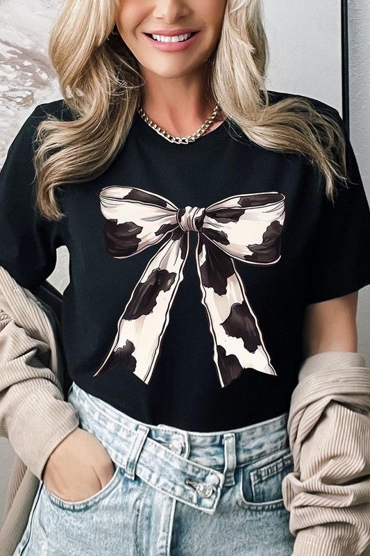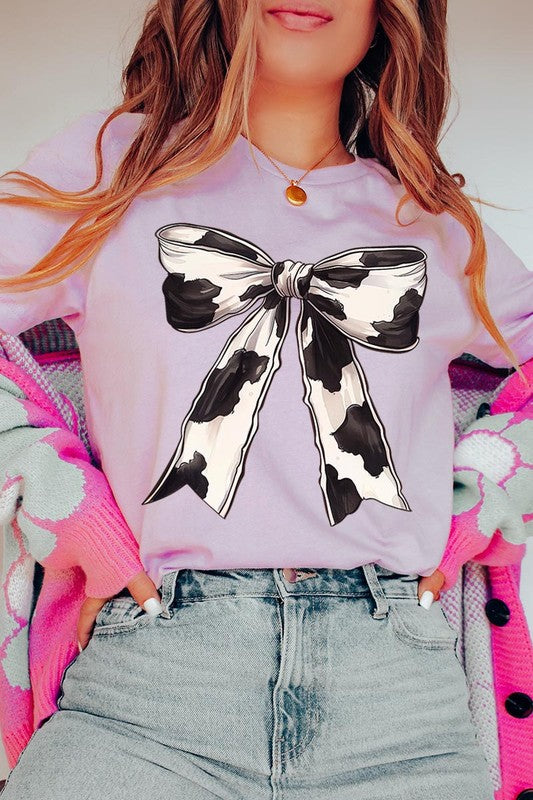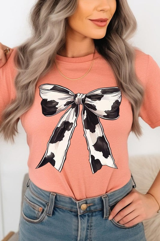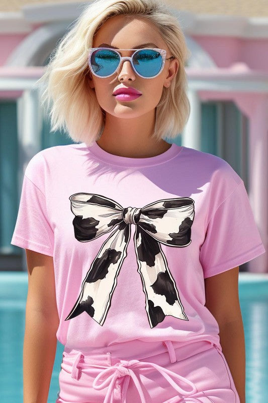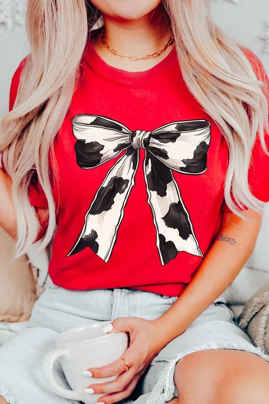 Coquette Cow Print Bow Graphic T Shirts.