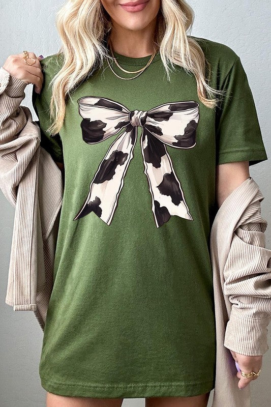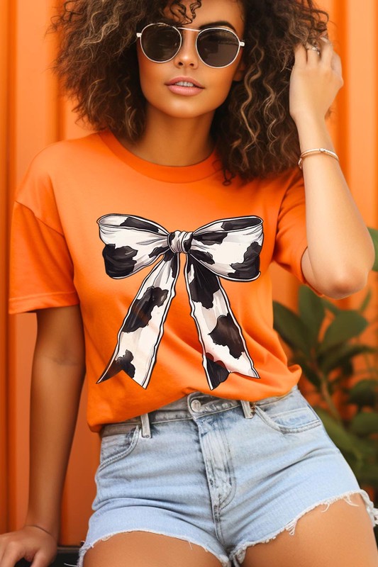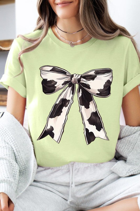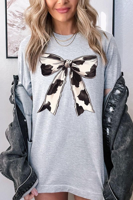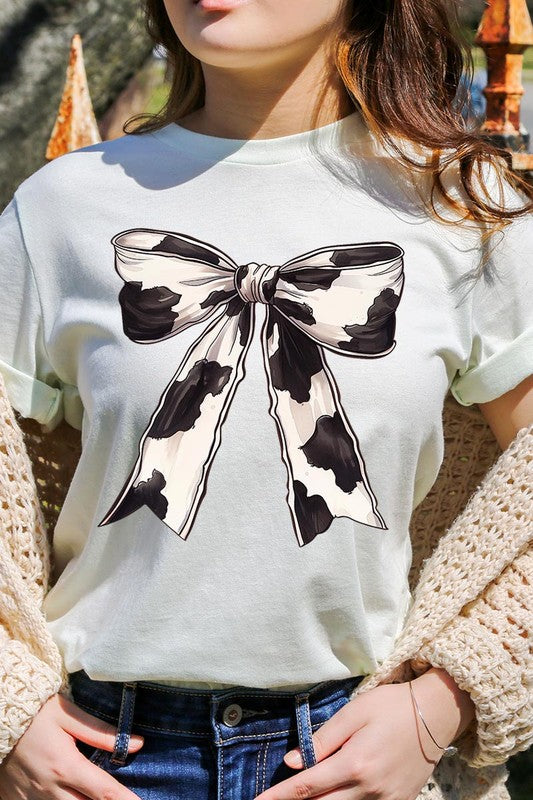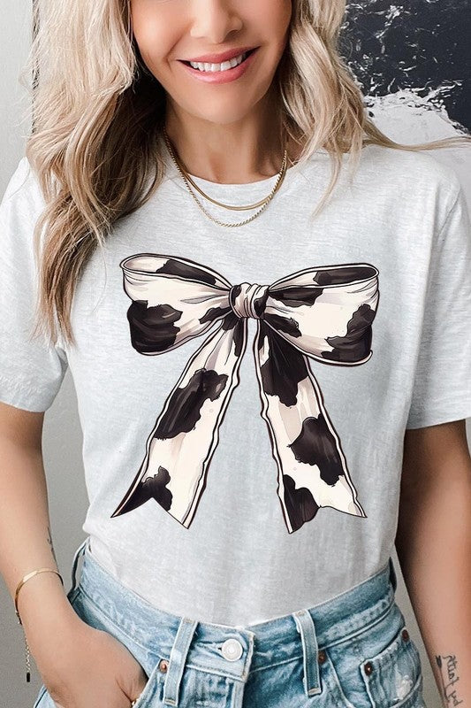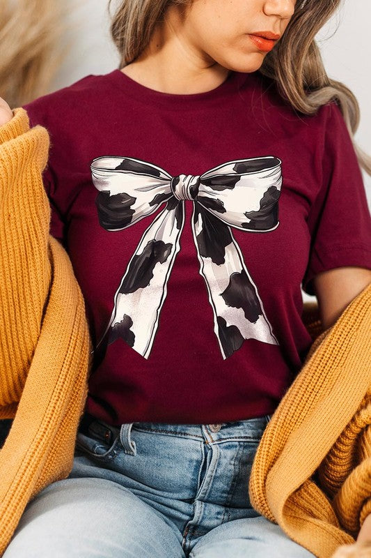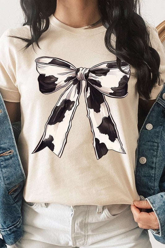 Coquette Cow Print Bow Graphic T Shirts.