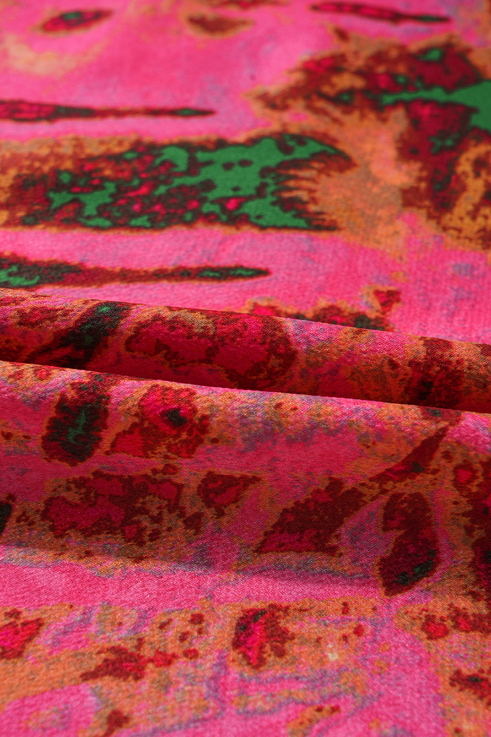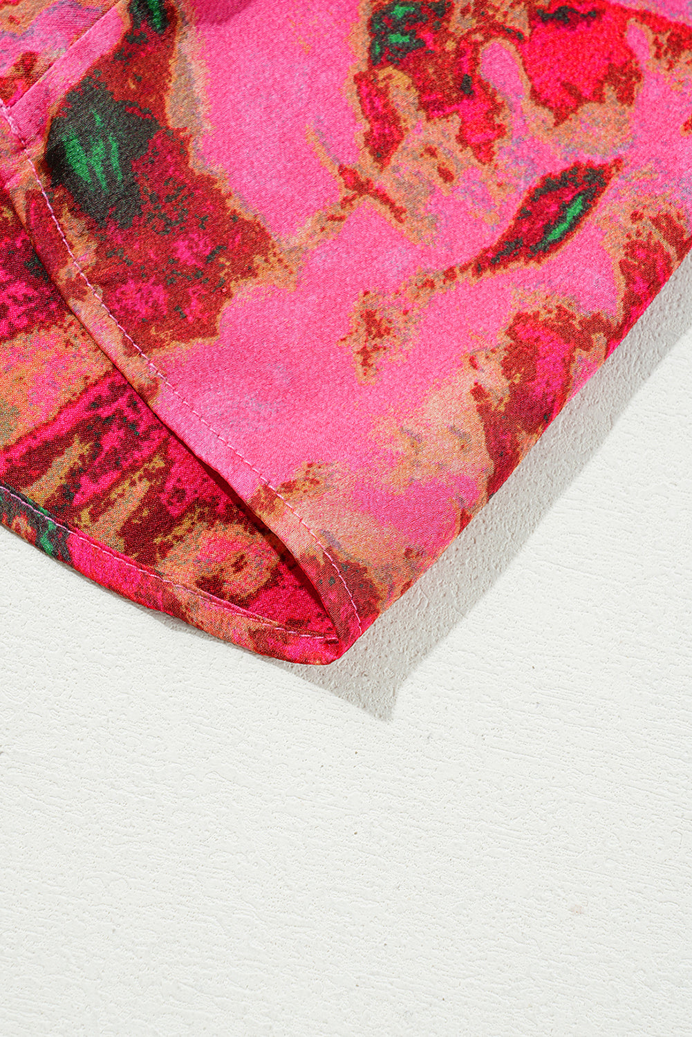 Rose Abstract Print Frilly Neckline Puff Sleeve Blouse
