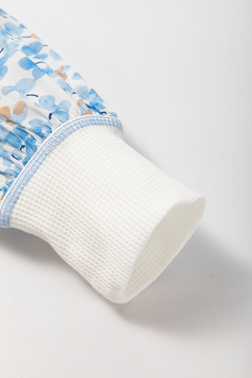 White Abstract Floral Patchwork Batwing Sleeve V Neck Blouse